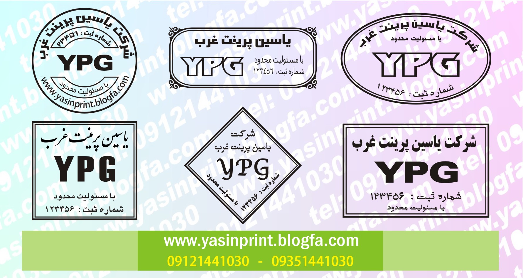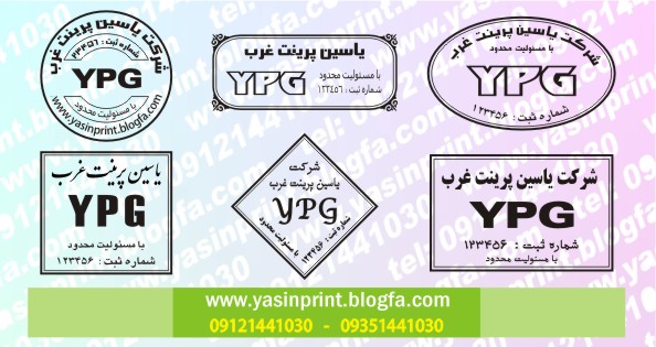 اما ممکن است با توجه به هزینه بالایی که برخی طراحان برای طراحی لوگوی شرکت از شما طلب میکنند (بعضا تا 10 میلیون تومان) شما مایل به هزینه کردن در این زمینه نباشید در این صورت بهترین کار استفاده از حروف اول اسم شرکت شما بصورت لاتین در مهر است . مثلا برای نمونه فوق که شرکت یاسین پرینت غرب است از حروف اول این کلمات Yasin Print Gharb که میشود YPG بصورت حروف بزرگ لاتین بعنوان لوگو در مهر شرکت استفاده نمایید که این کار در مهرهای شرکتها و موسسات بسیار مرسوم است و هزینه طراحی لوگو هم نخواهید داشت . مانند تصاویر زیر